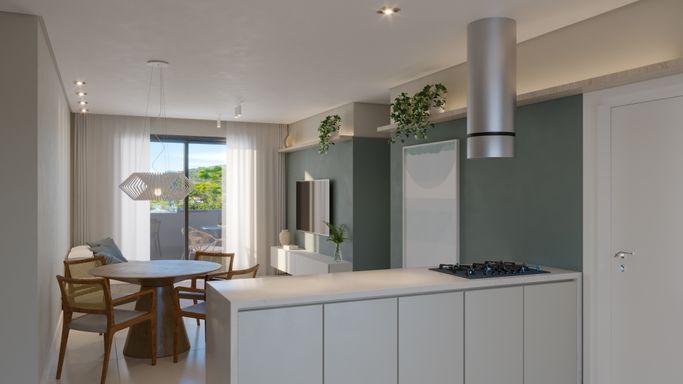 Os apartamentos possuem varanda com churrasqueira a carvão, excelente iluminação natural, persianas elétricas, além de preparação para ar-condicionado e aquecedor de passagem.